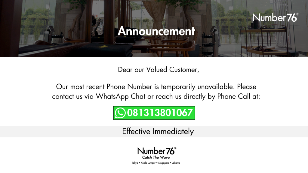 Our most recent Phone Number is temporarily unavailable. Please contact us via WhatsApp Chat or reach us directly Phone Call at: +6281313801067